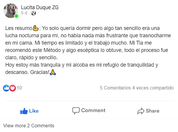 Probé diferentes métodos, busqué en linea mil “remedios” y finalmente encontré un Método que no sólo me ayudó a superar el Insomnio, sino que también transformó mi vida por completo.